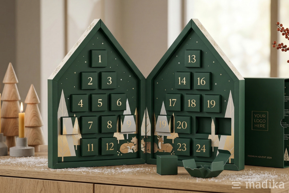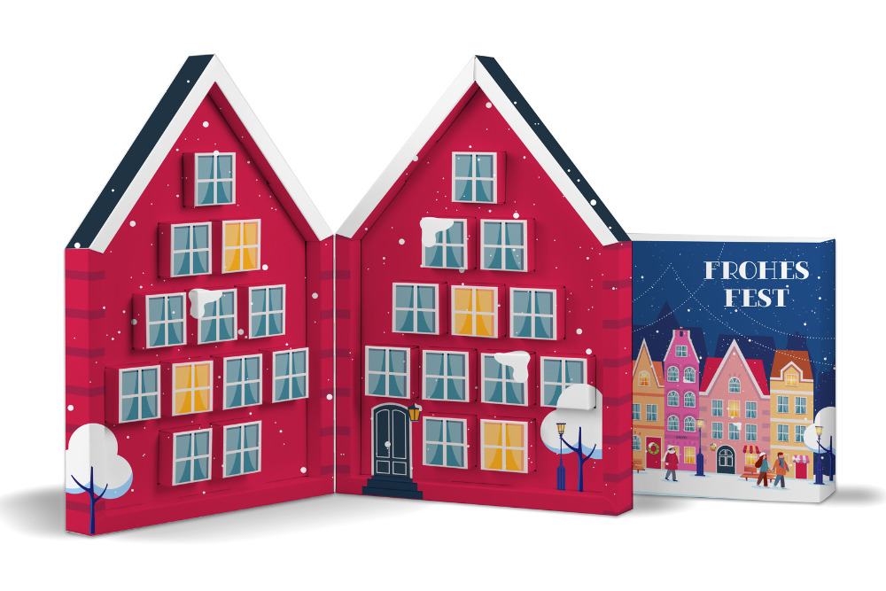 Adventskalender in Hausform mit Ihrem Design bedrucken